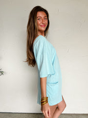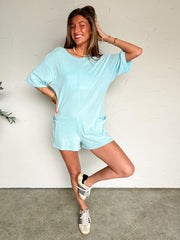 On The Go Open Back Romper- Blue