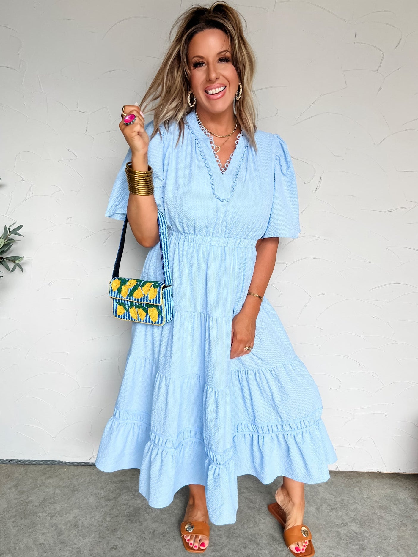 Styled With: Our Colette Sandal- Camel & Olivia Blue Striped Beaded Bag