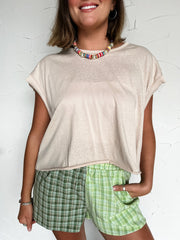 Styled With: Our Sunny Side Up Color Block Mini Shorts- Forest/Lime