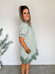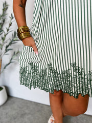 Show Your Beauty Floral Embroidered Hem Stripe Dress