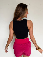 Stay On Beat Ribbed Tank- Black