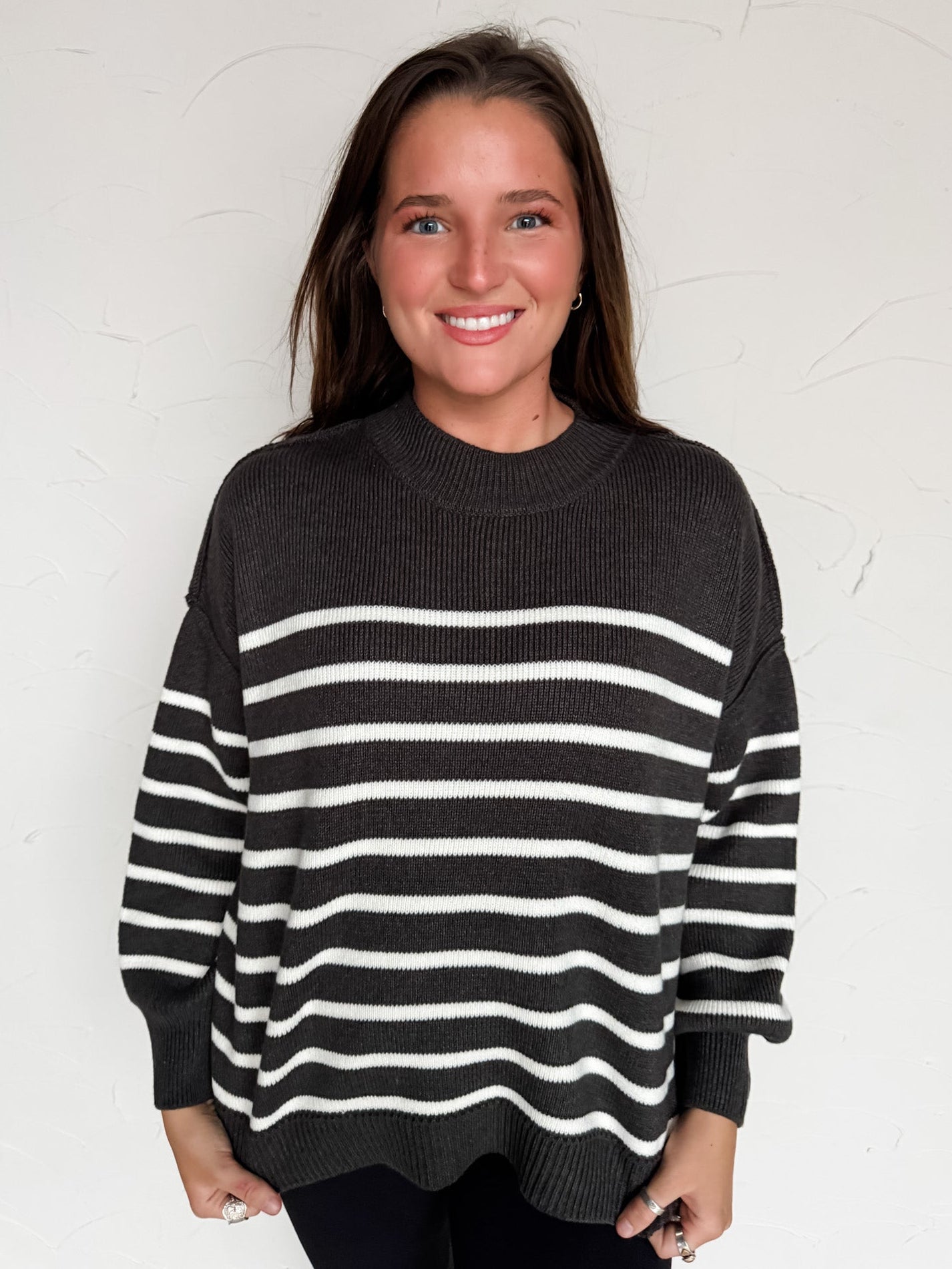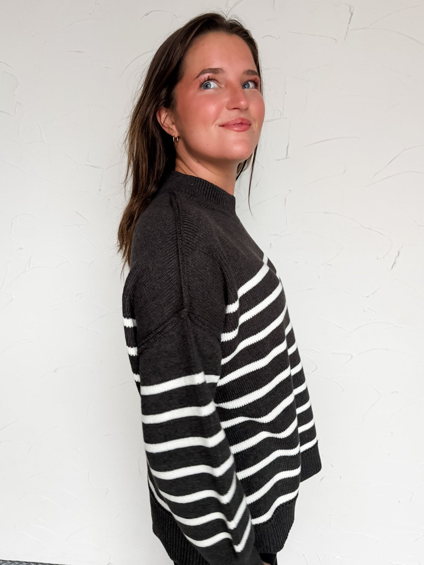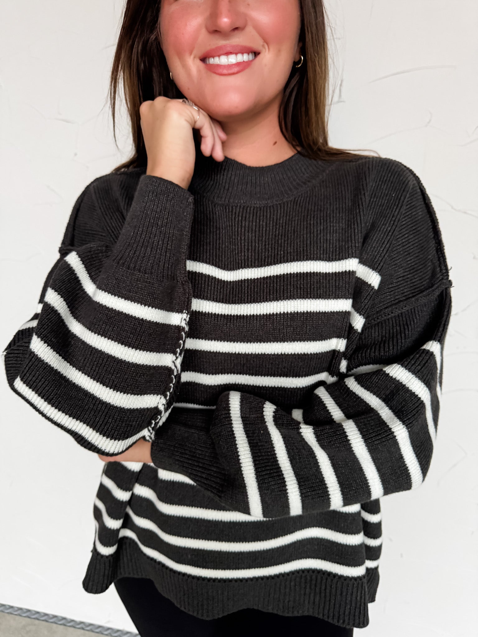 Taking My Time Exposed Seam Stripe Sweater- Charcoal