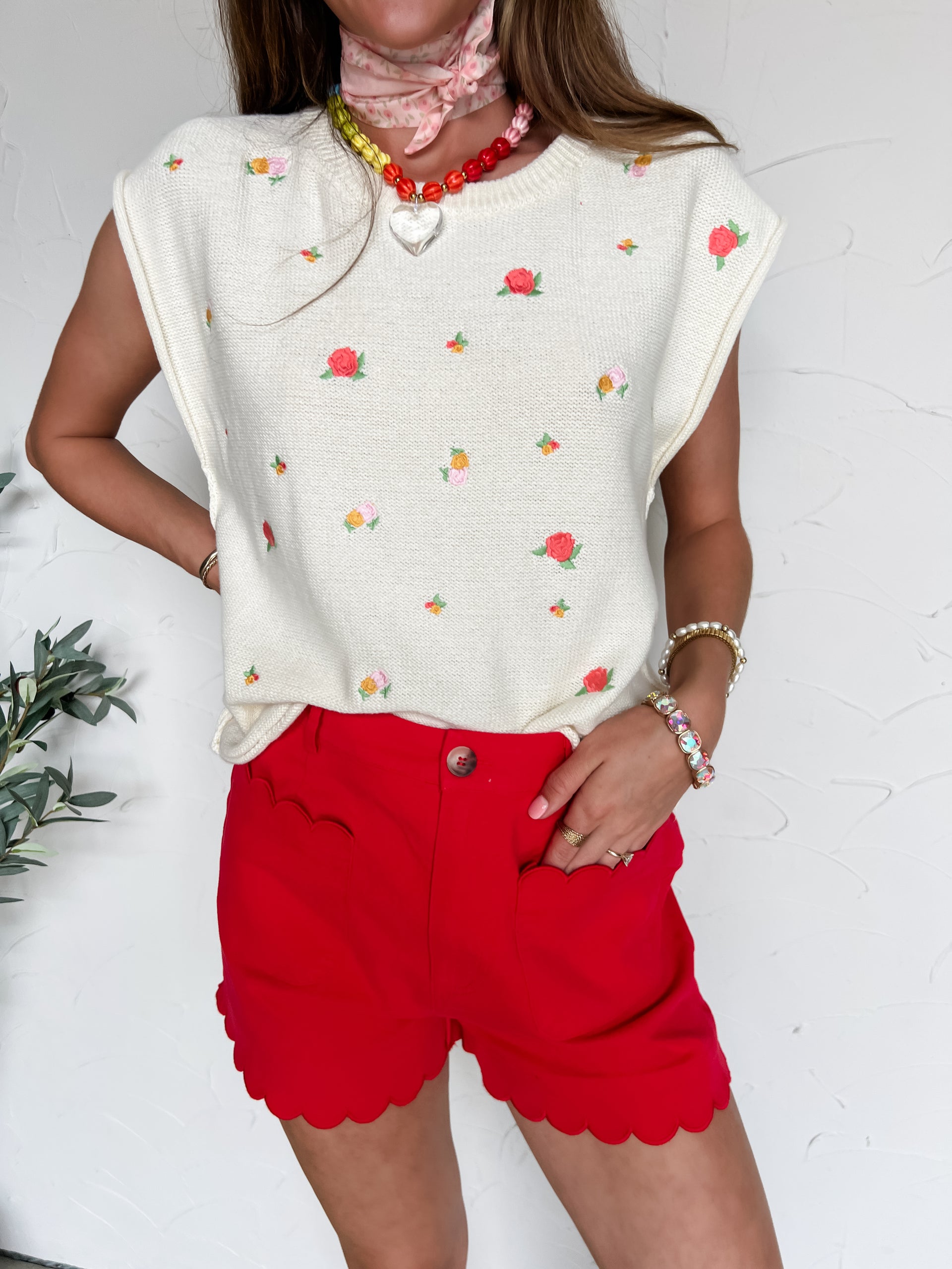 Styled With: Our Call Me Yours Scalloped Shorts- Red & {TJ} Happy Heart Necklace