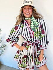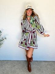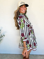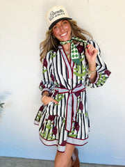 A Real Page Turner Stripe & Floral Waist Tie Dress