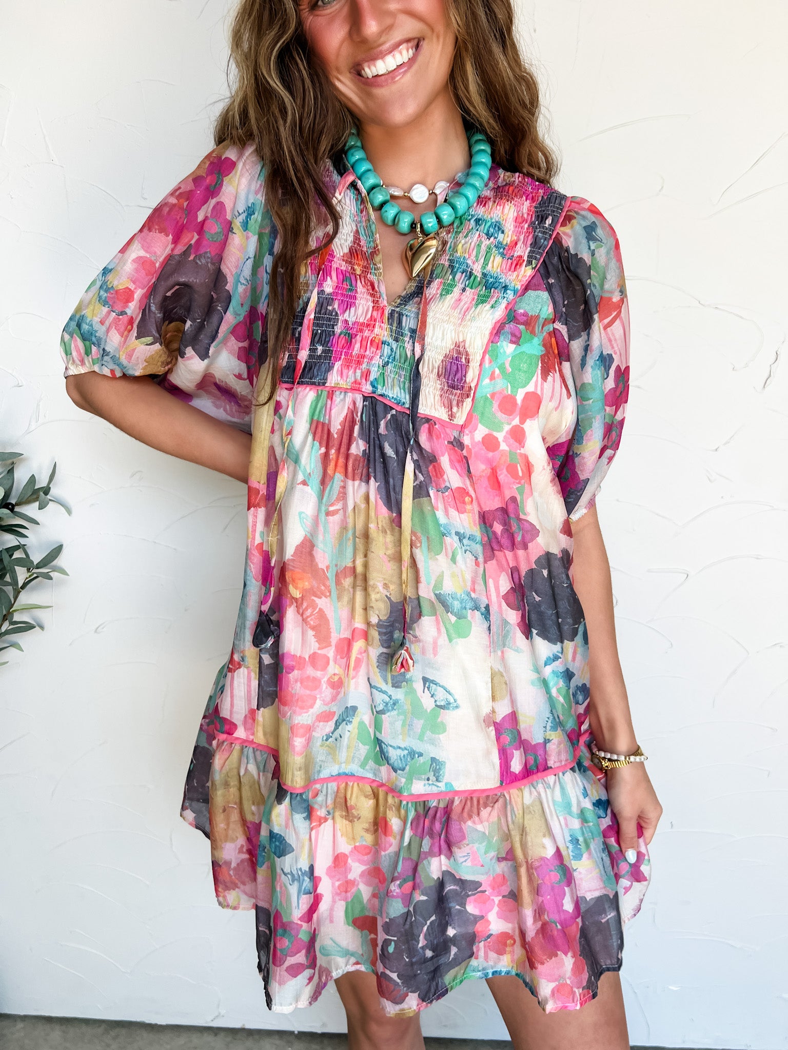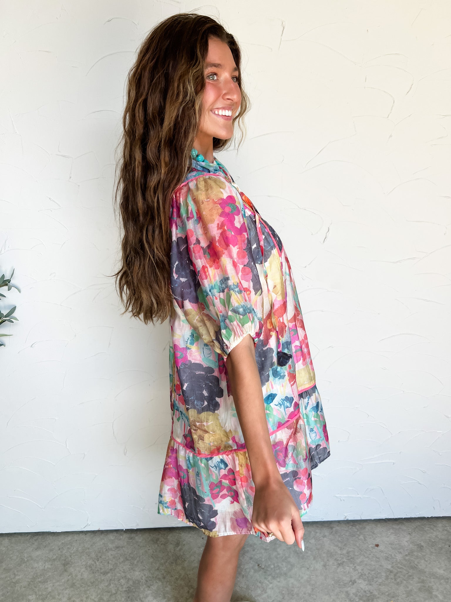 Believe What You See Watercolor Floral Babydoll Dress