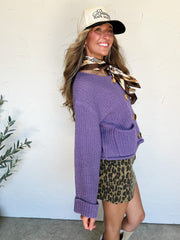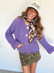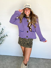 Don't Blink Gold Button Pocket Cardigan- Dusty Lavender