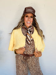 Styled With: Our God's Favor Foam Hat & Feeling Your Best Yellow Button Down Cardigan