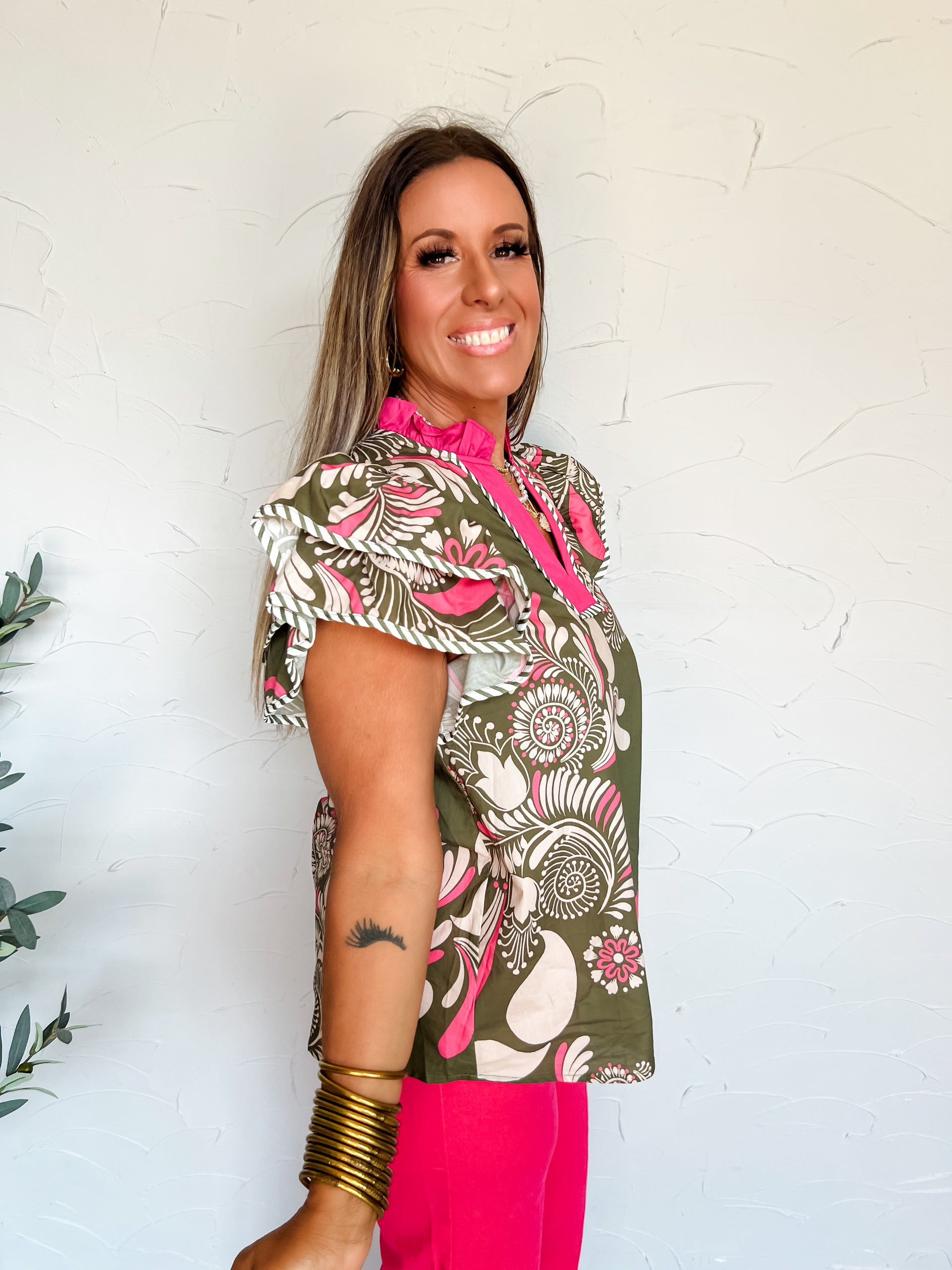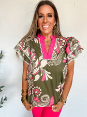 In My Own World Paisley Top- Olive