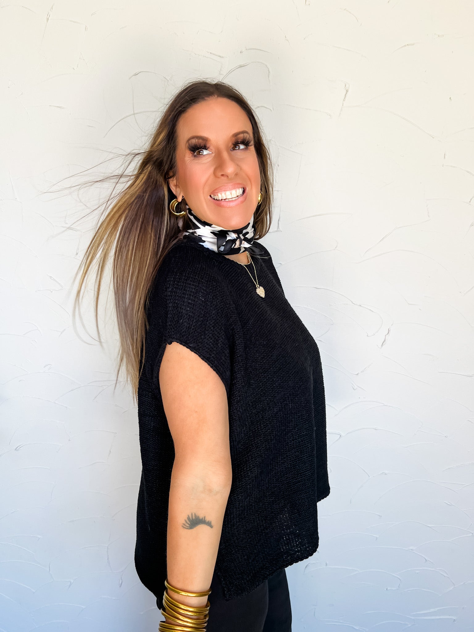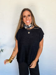 Much To Do Oversized Cutoff Sleeve Knit Top- Black