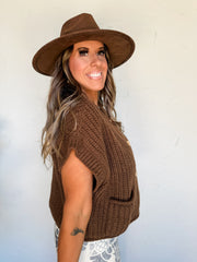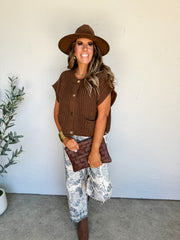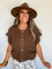 No Looking Back Button Down Knit Sweater Top- Chocolate
