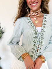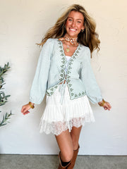 Pure Delight Long Sleeve Scallop Embroidered Top