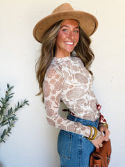 Put Yourself First Floral-Print Mesh Mock-Neck Top