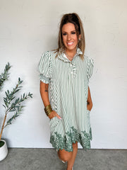 Show Your Beauty Floral Embroidered Hem Stripe Dress