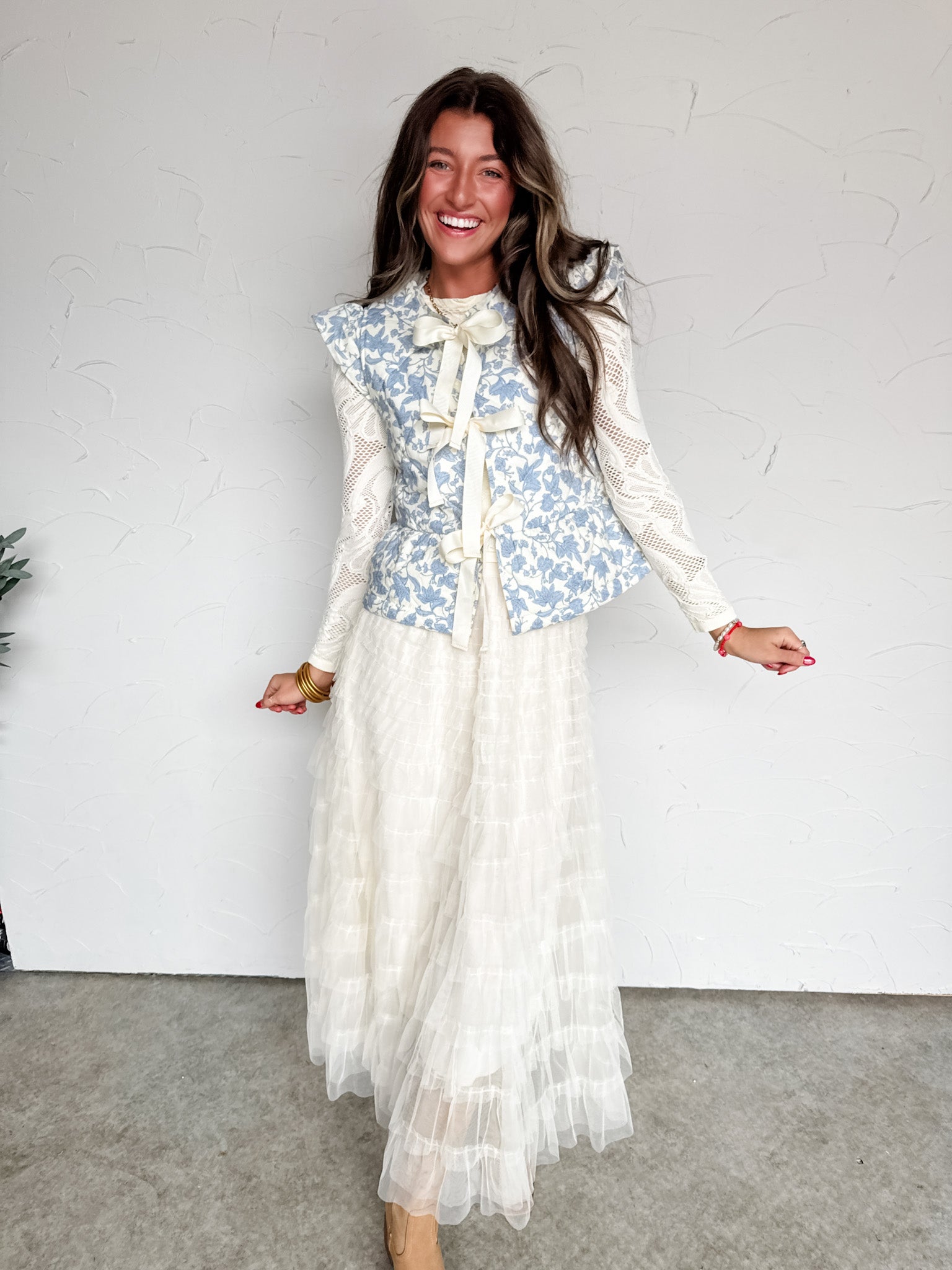 Styled With: Our Twirl Me Around Tulle Midi Skirt & Cozy And Free Knit Jacquard Mock Neck- Cream & Alyssa Platform Boots