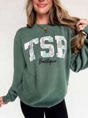 TSB Boutique Duck Camo Sweatshirt- Cypress Green