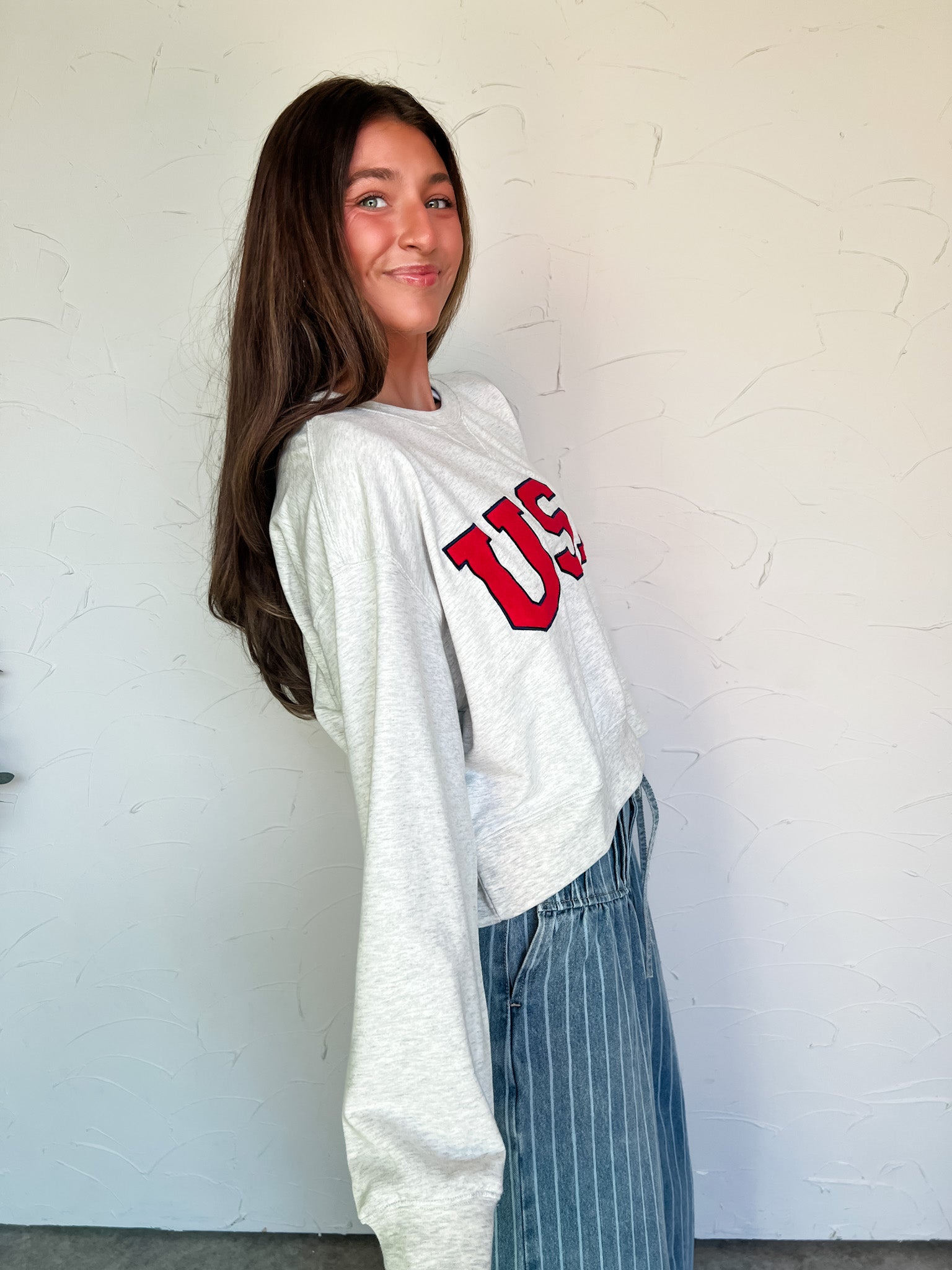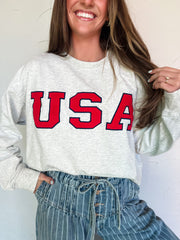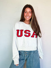 USA Cropped Sweatshirt- Grey/Red