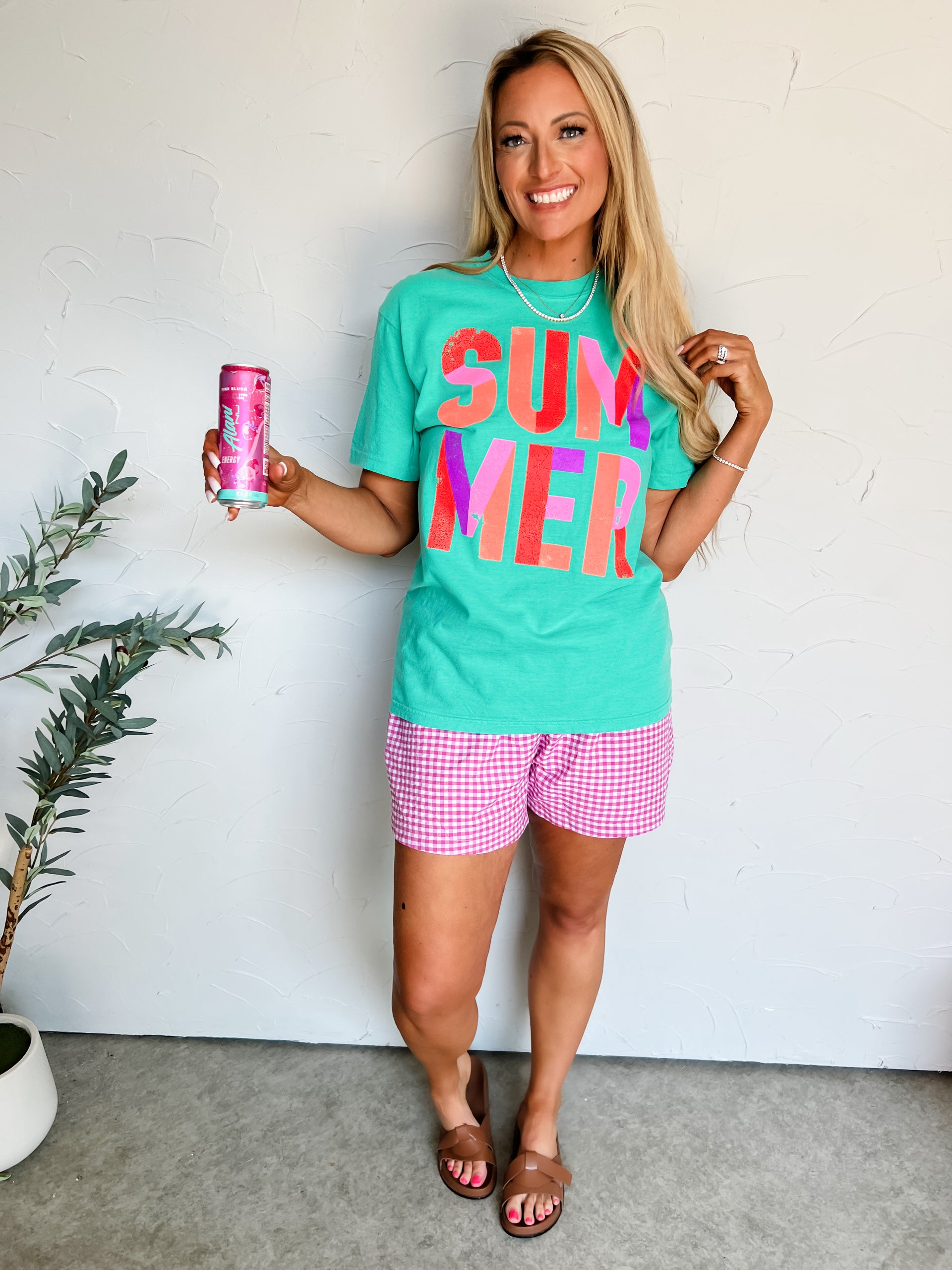 Styled With: Our It's A Must Gingham Boxer Shorts- Hot Pink