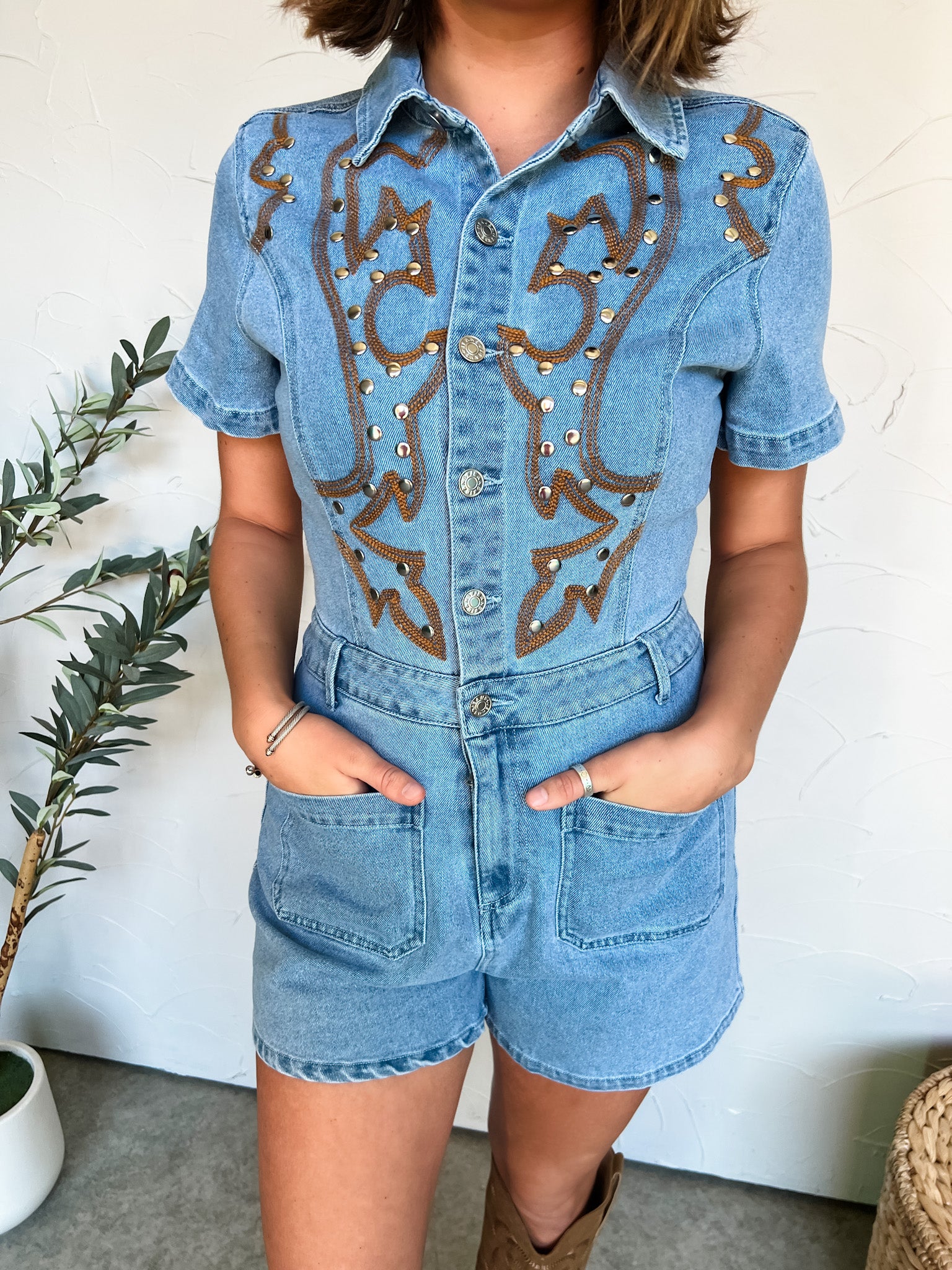 Country Girls Designs Embroidered Denim Romper