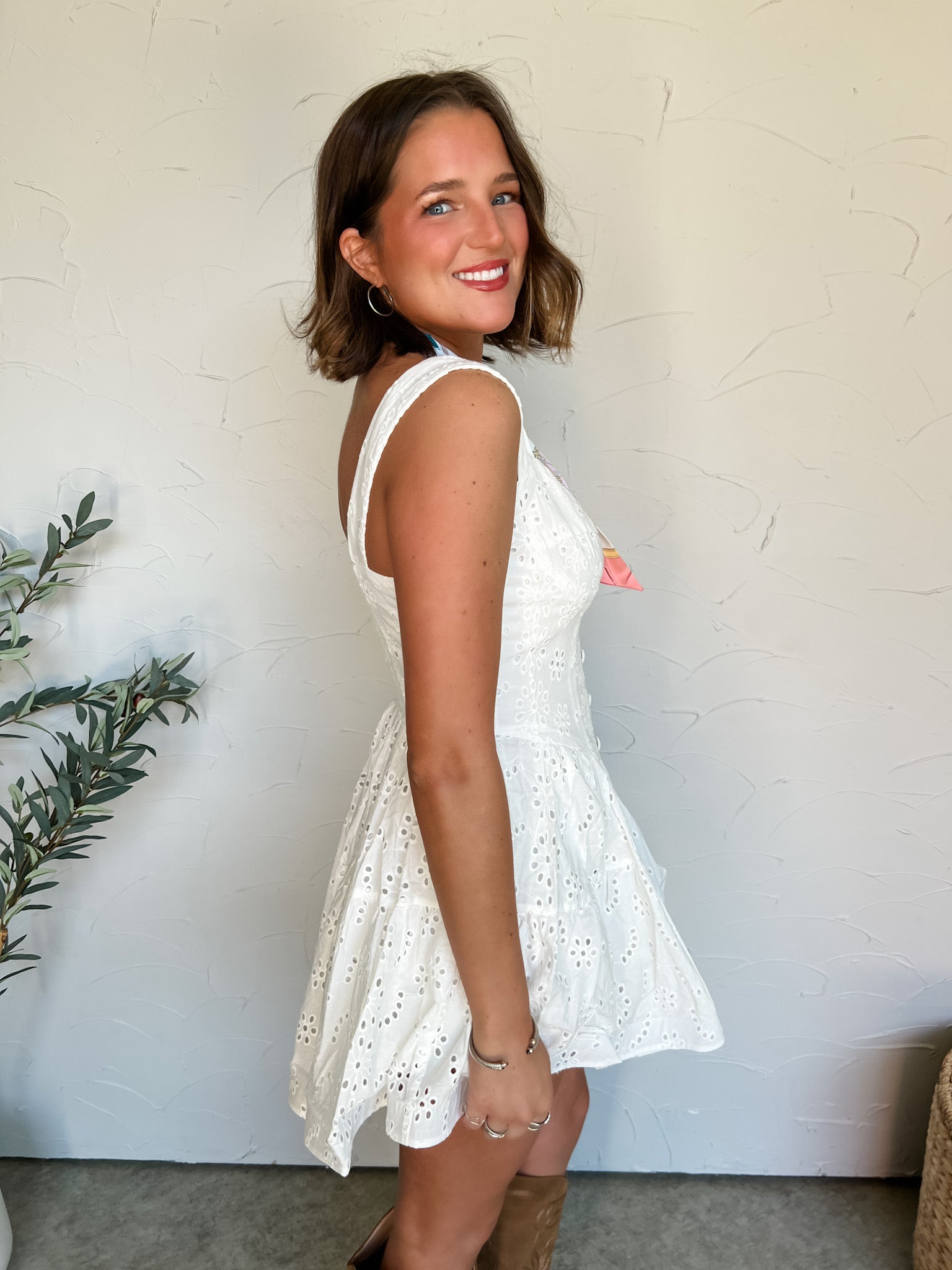 Don't Think Twice Eyelet Button Down Mini Dress