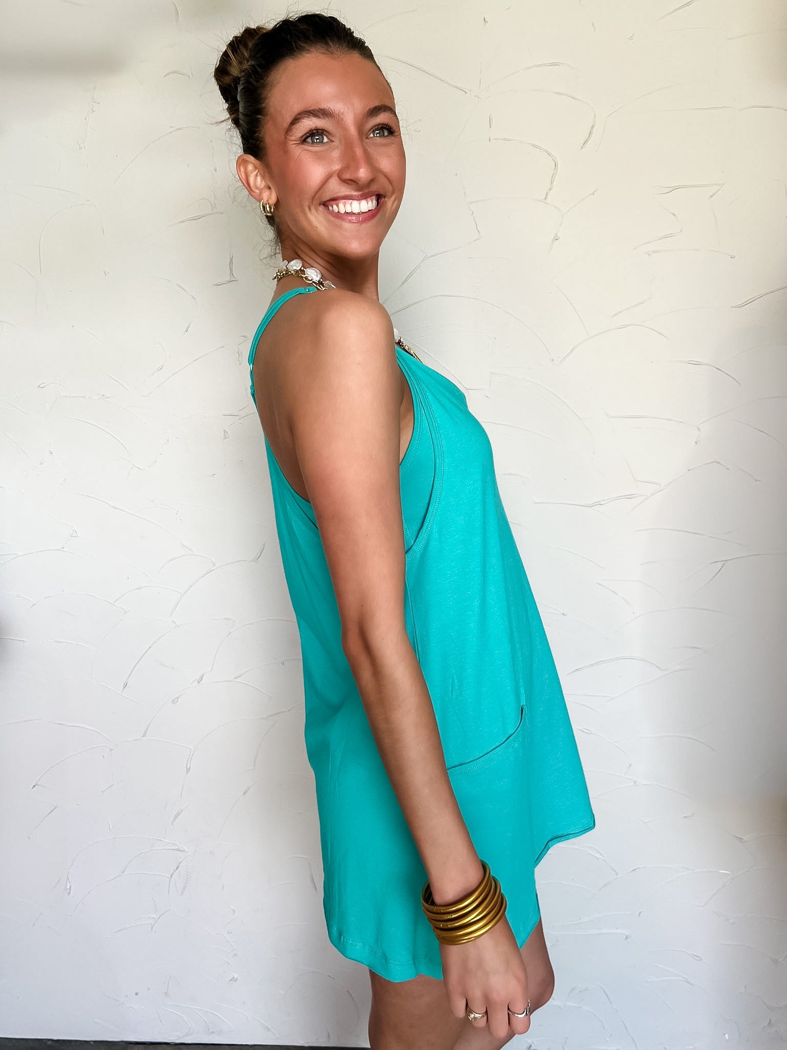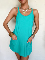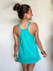 It's The Little Things Romper Lined Dress- Turquoise