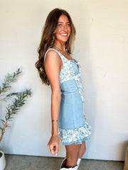 Promised Charm Denim With Lace Ruffle Mini Dress