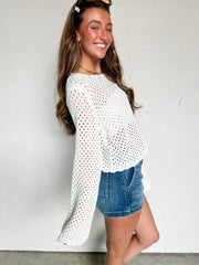 Wish You Were Here Crochet Open Knit Sweater- Off White