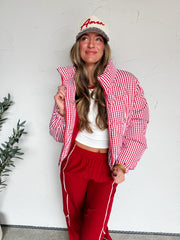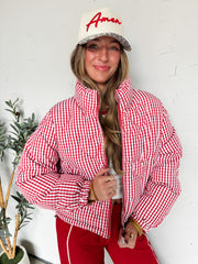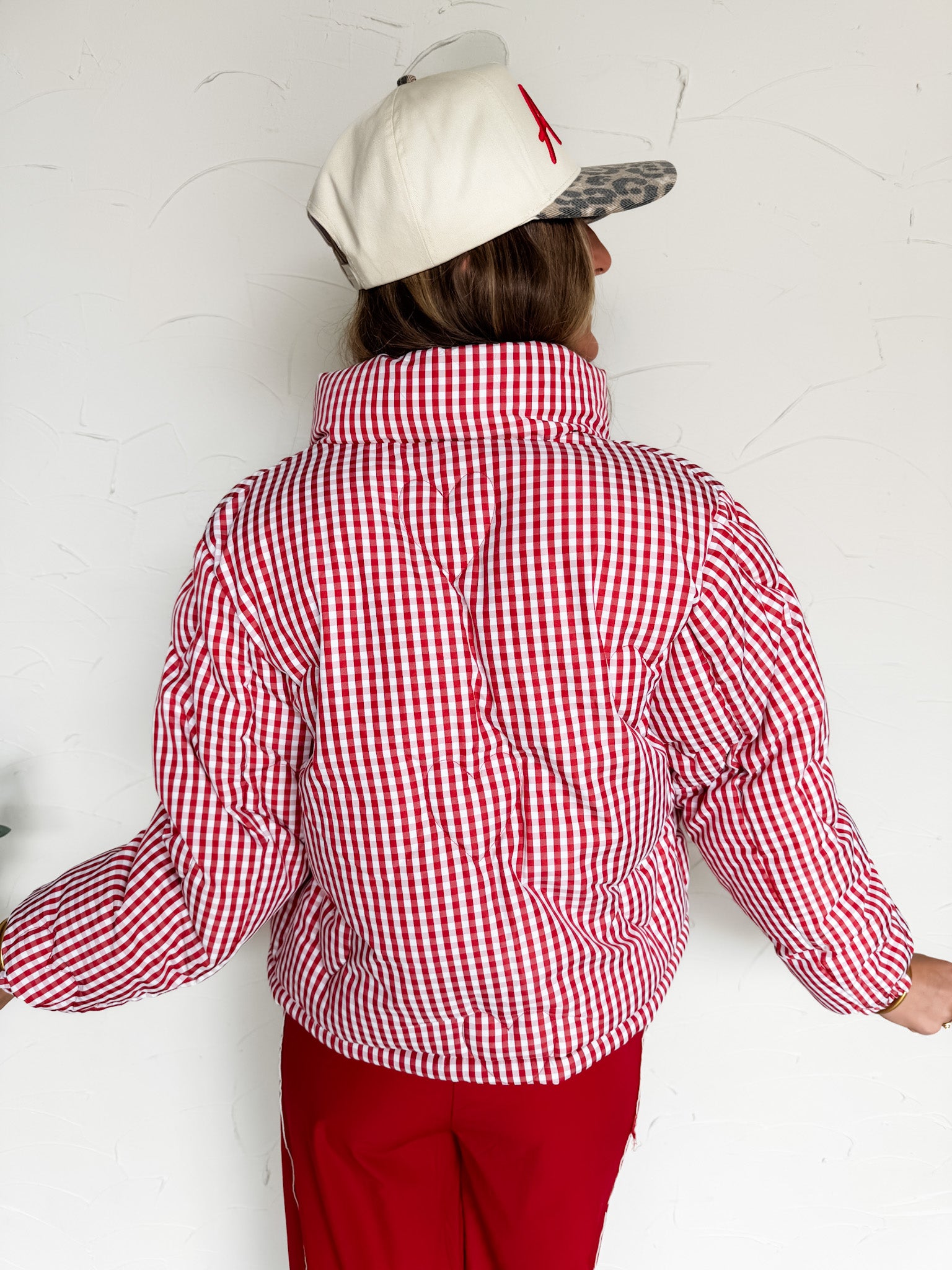 Don't Mind If I Do Gingham Puff Heart Jacket