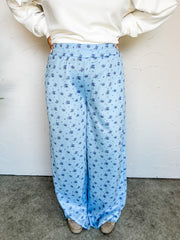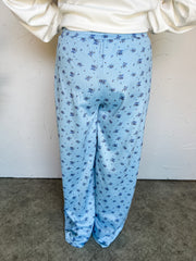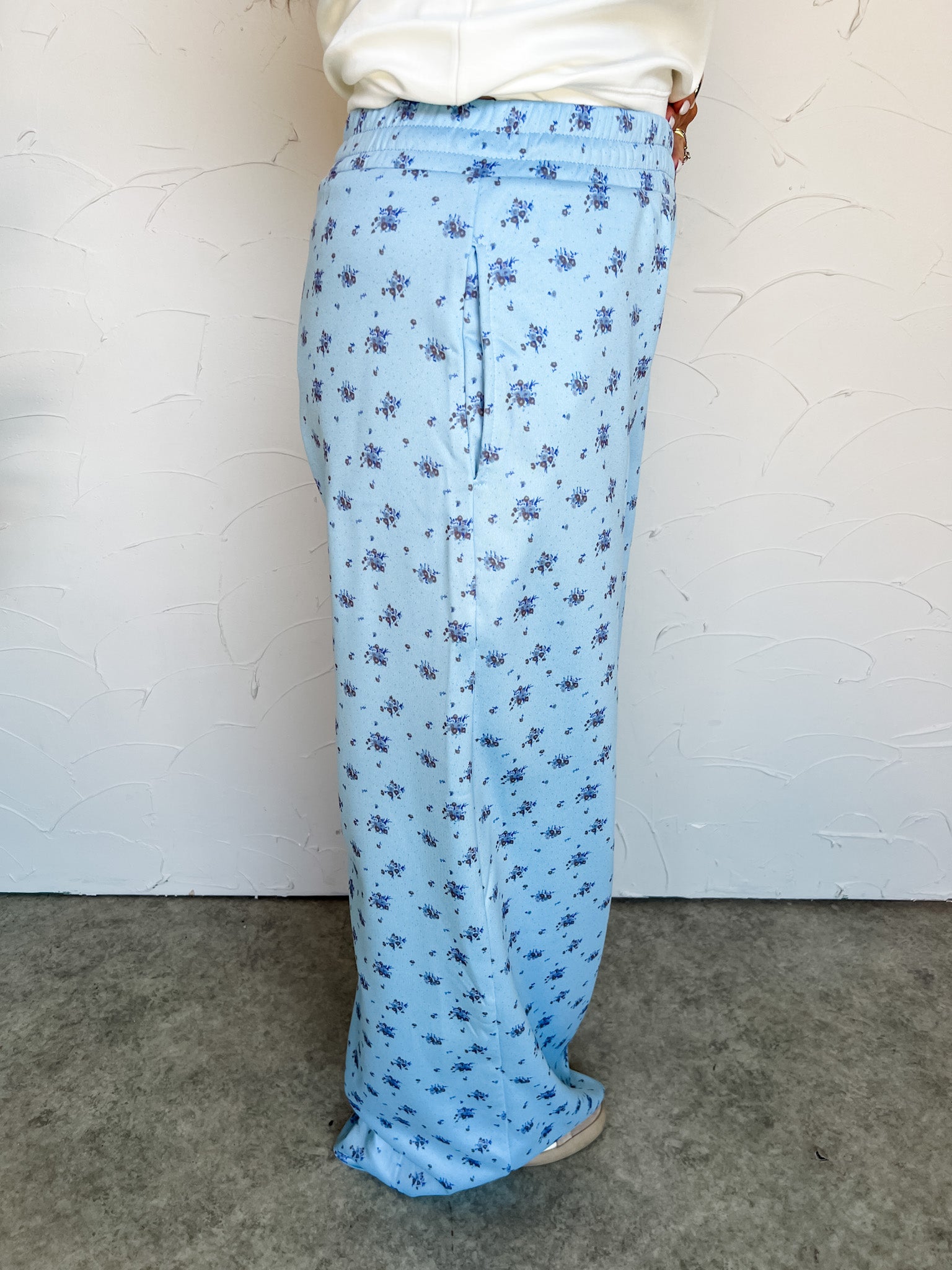 It's A Surprise Floral Fleece Sweatpants- Baby Blue