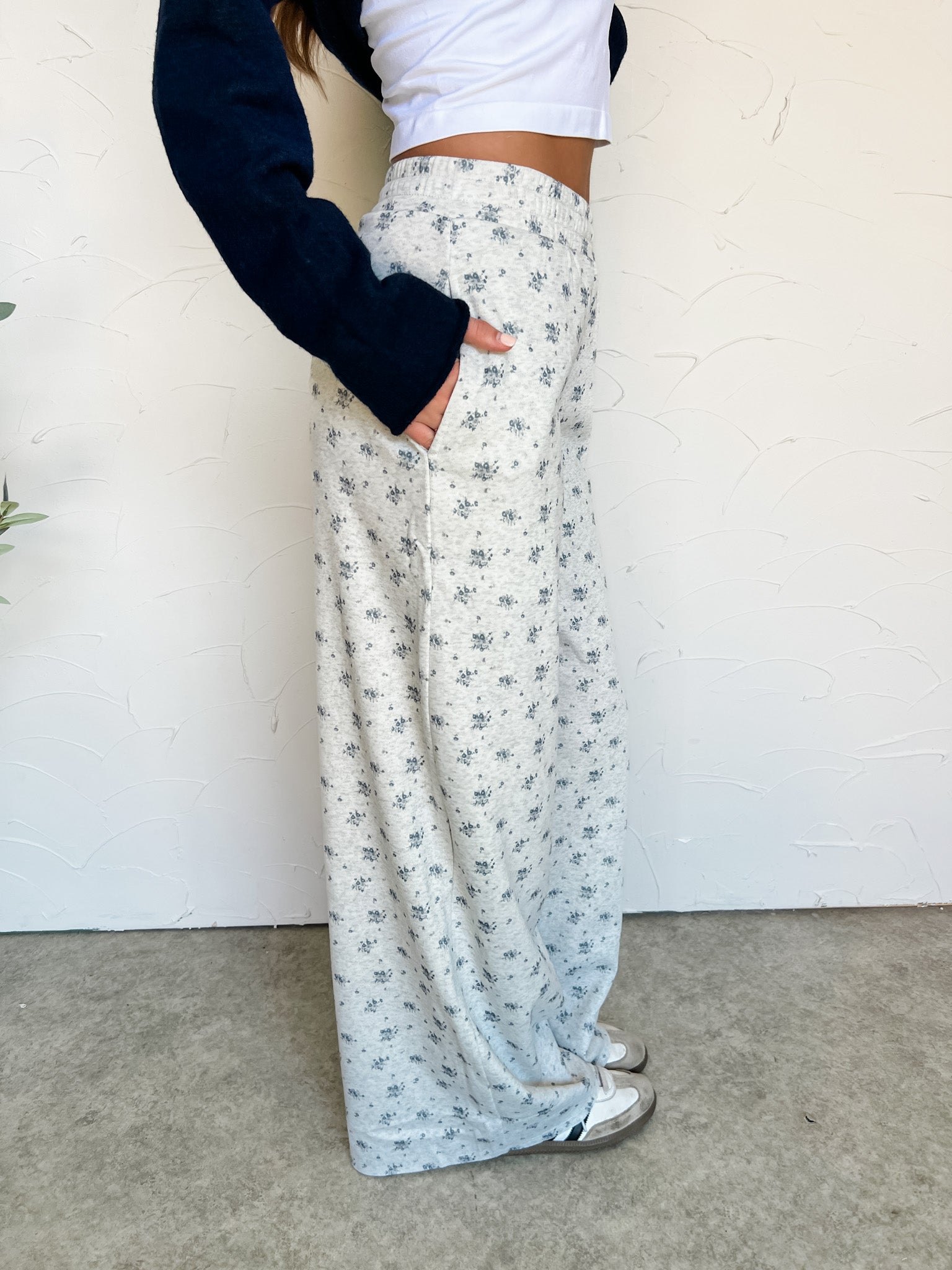It's A Surprise Floral Fleece Sweatpants- Heather