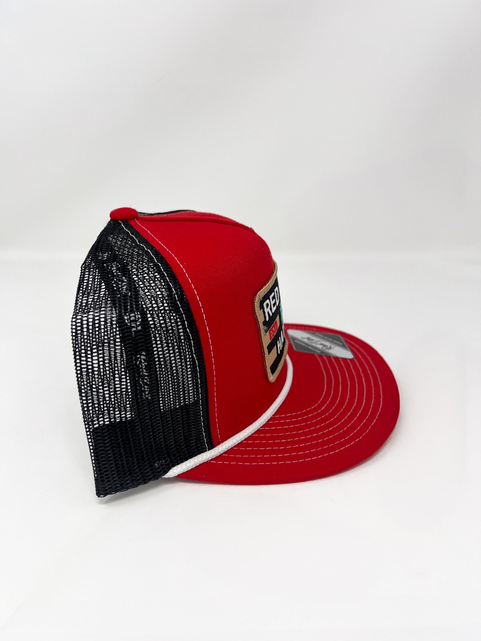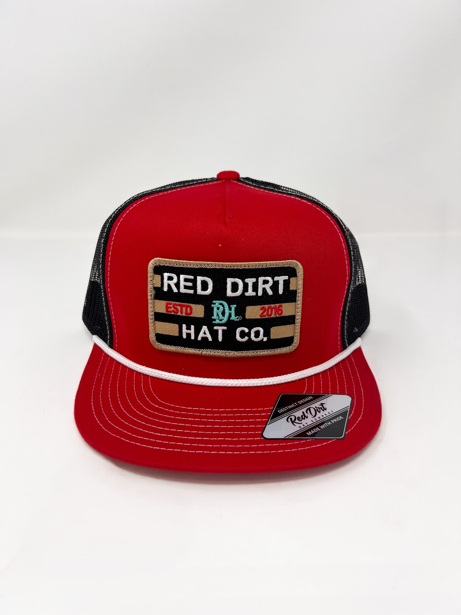 This Red Dirt Brand hat turns heads with a bold red flat bill and breathable black mesh back for that classic trucker style. The embroidered patch pops in black and tan with a subtle touch of turquoise, adding just the right amount of southwestern flair. It’s the perfect cap for sun-up to sun-down adventures with a punch of personality.