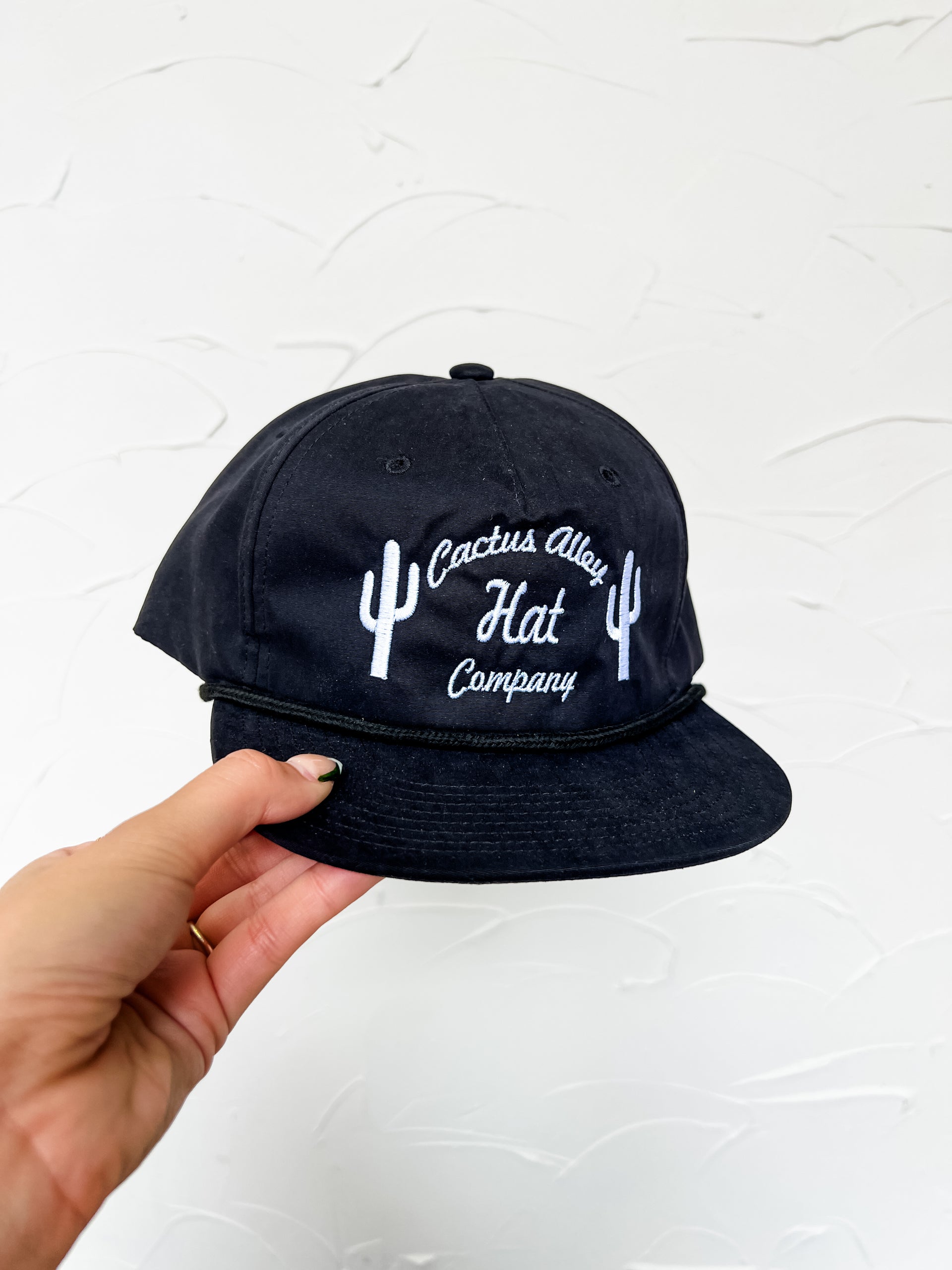 Stay cool and stylish with The Cactus Hat. This black hat features a black rope design and is perfect for any outdoor adventure. Protect yourself from the sun while looking effortlessly chic. The Cactus Hat is a must-have addition to your wardrobe.
