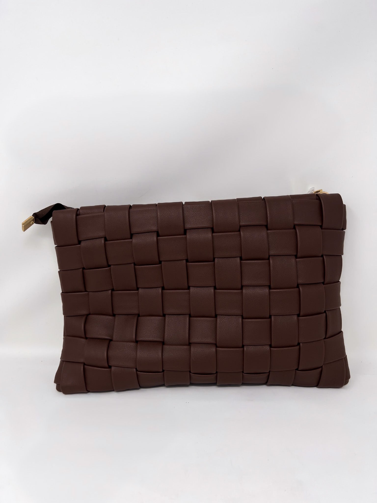 One bag, three ways to wear it! This brown braided clutch is as versatile as it is beautiful—carry it as a wristlet, wear it on your shoulder, or go hands-free with the crossbody strap. The woven texture gives it a luxe feel while the convertible design keeps up with your every move.