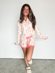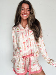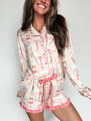 Bows & Bubbly Ruffle Pajama Set- Cream