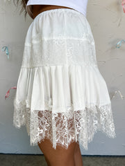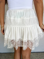 Caught My Eye Lace Trim Skirt- White