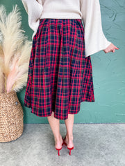 Sing Me A Melody Plaid Pleated Skirt- Red