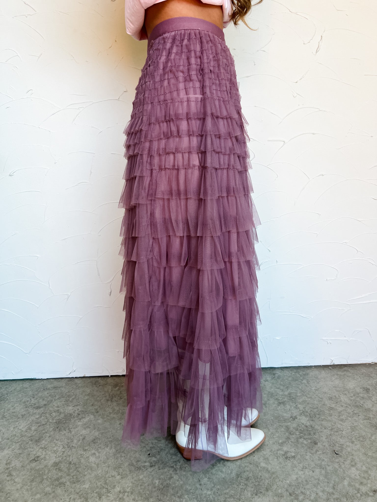 Twirl Me Around Tulle Midi Skirt- Mauve
