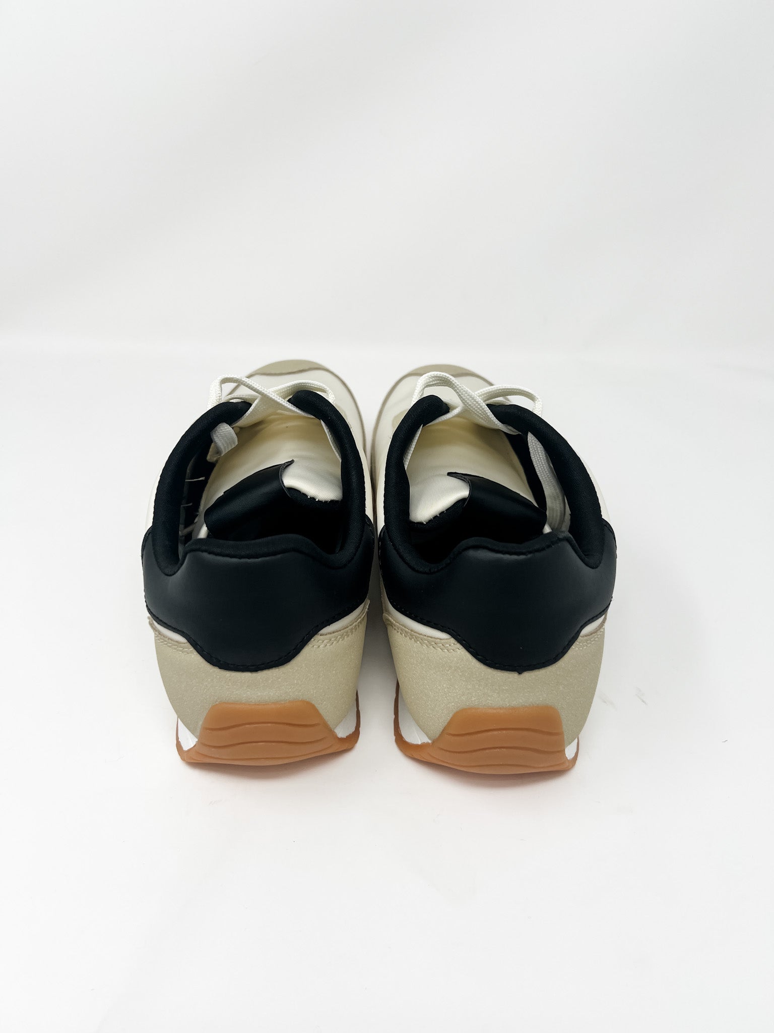 Elevate your everyday look with these chic cream sneakers featuring a bold black bow design. The neutral color palette keeps them effortlessly wearable, while the unique side detailing adds the perfect touch of flair. Finished with a comfy cushioned insole, soft faux leather, and a classic gum sole, these sneakers are your new go-to for stylish, all-day wear.