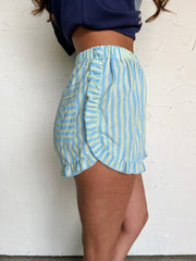 Big Dreams Striped Ruffled Shorts- Navy Combo