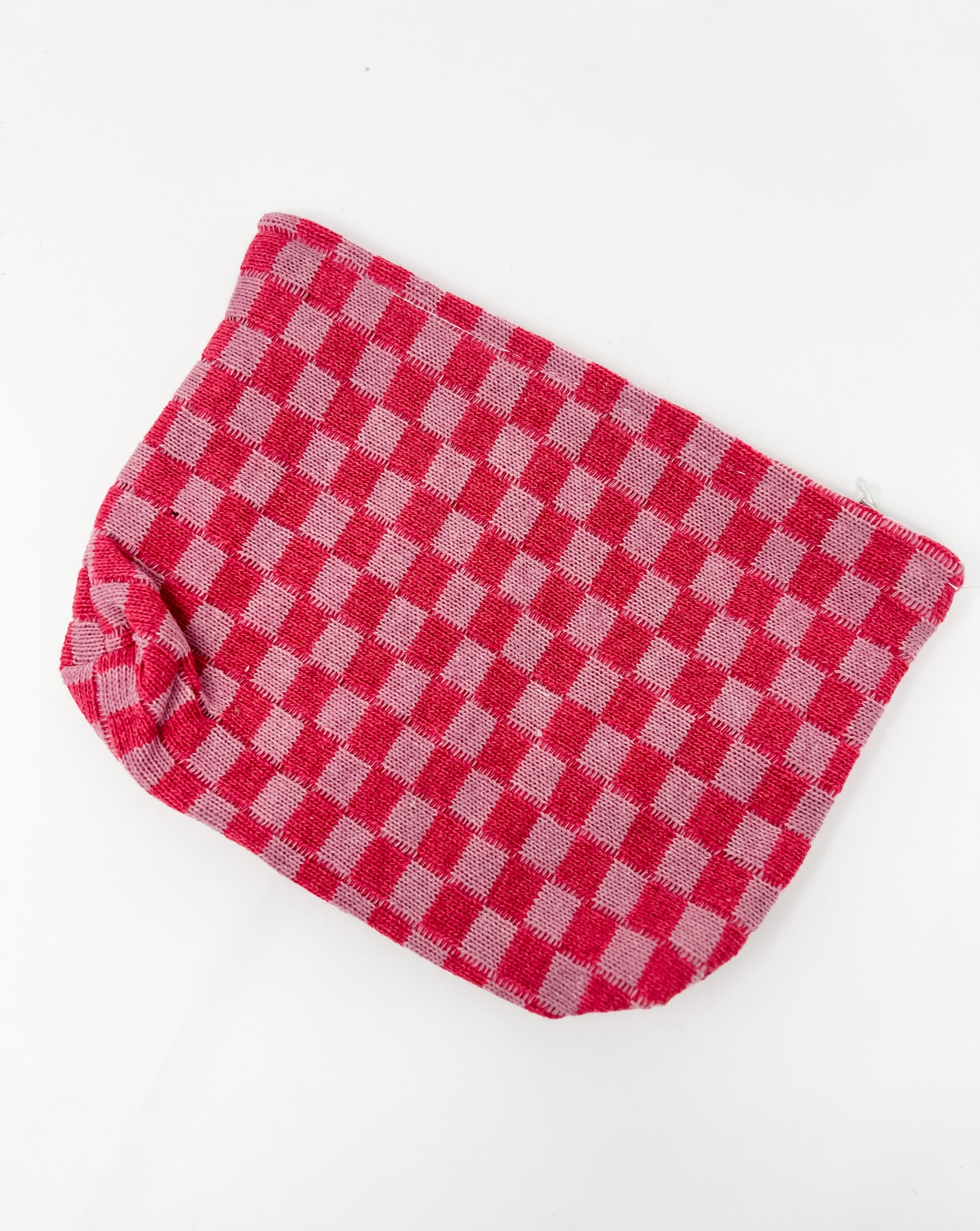 Pink Checkered Cosmetic Makeup Bag