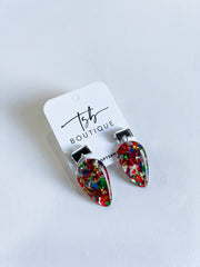 Red Funfetti Light Bulb/ Silver Top Earrings