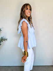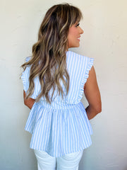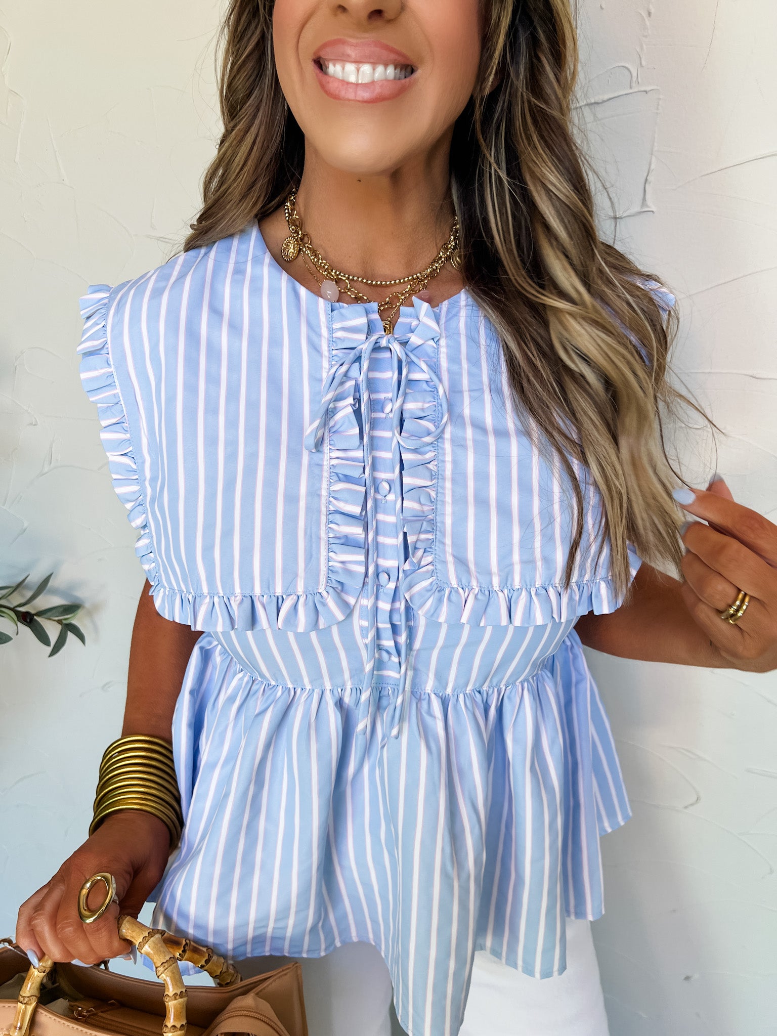 Easy Days Are Here Sailor Collar Stripe Babydoll Top- Sky/Pink