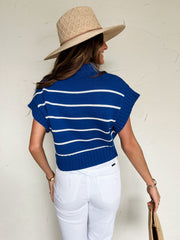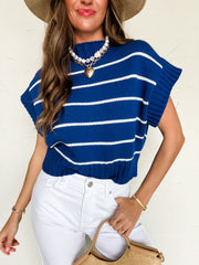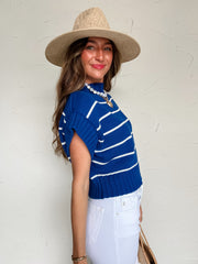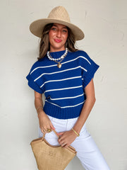 Falling For You Striped Sweater Top- Lt Navy