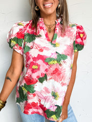 Garden Flowers Puff Sleeve Top