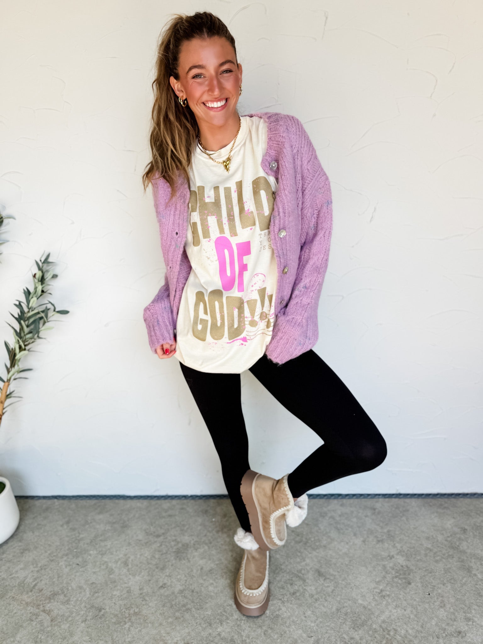 Styled With: Our The Joyce Fur Lined Platform Boot- Almond & Keep It Up Buttery Soft Leggings- Black & Child Of God