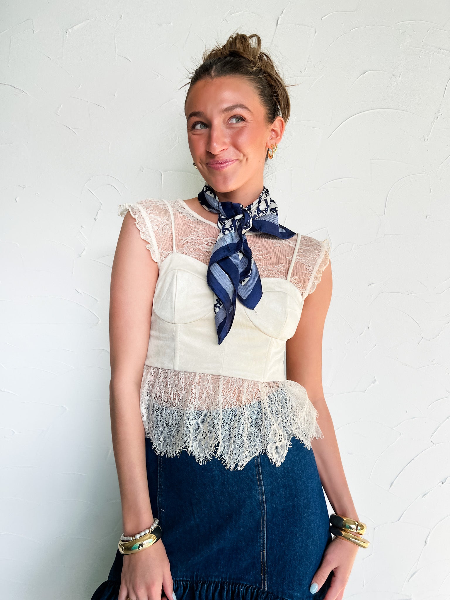 Just Keep Watching Lace Corset Top- Ecru