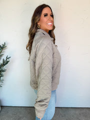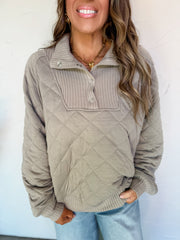 Long Days Ahead Quilted Pullover- Stone Taupe