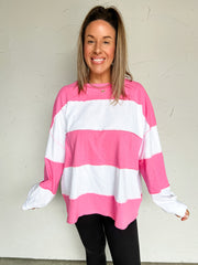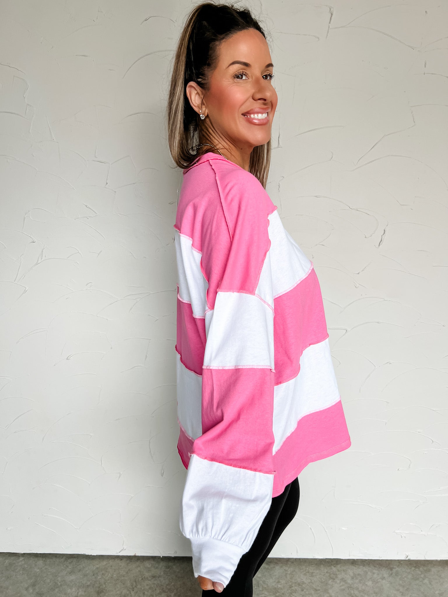 Love In Every Layer Contrast Panel Pullover- Pink White