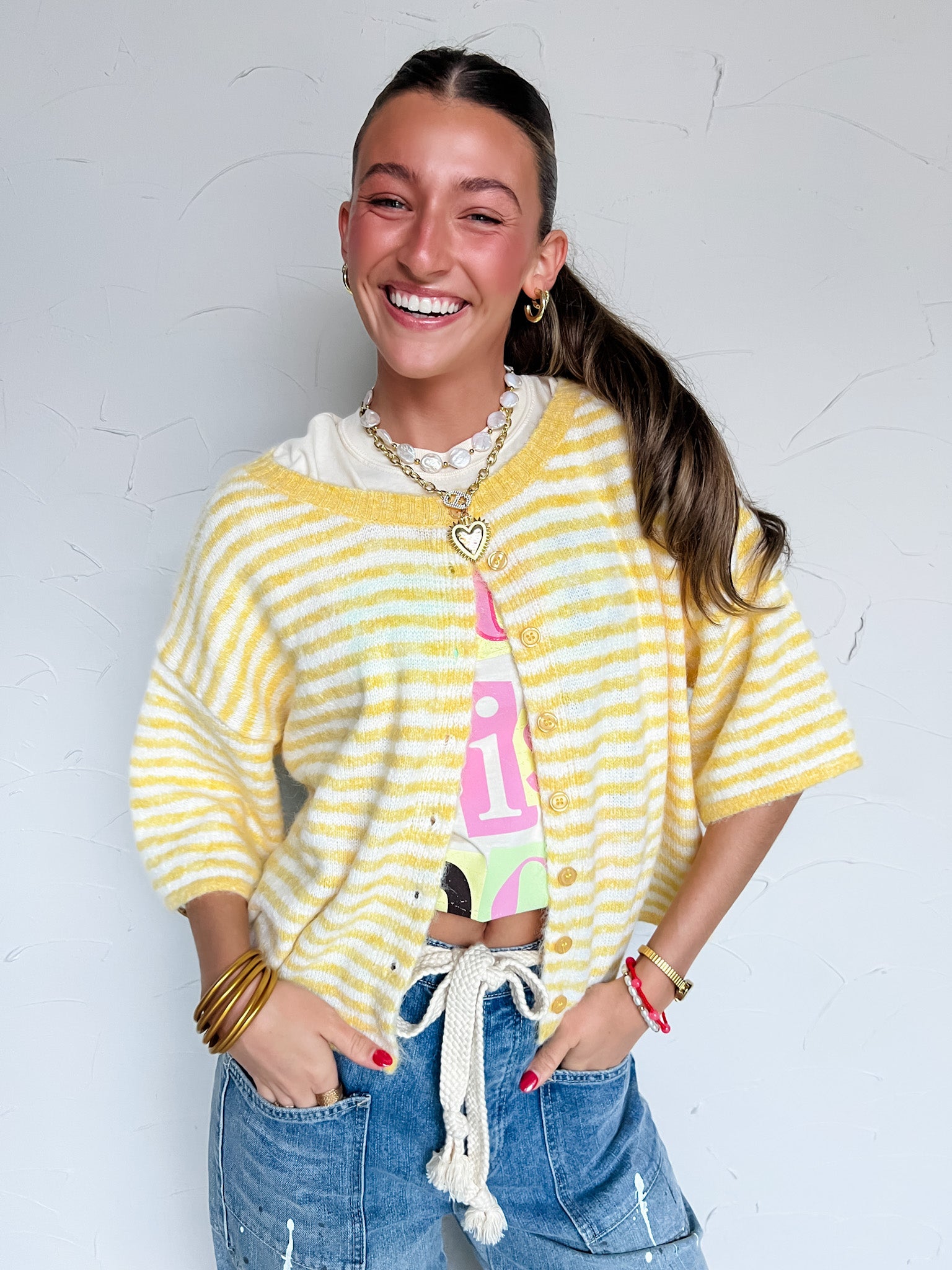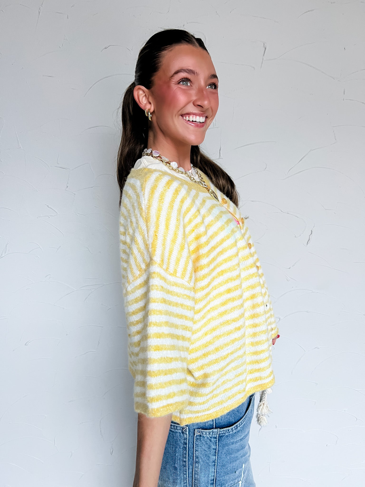 No Truer Words Spoken Striped Top- Yellow/Ivory