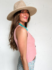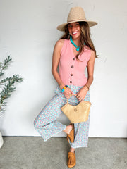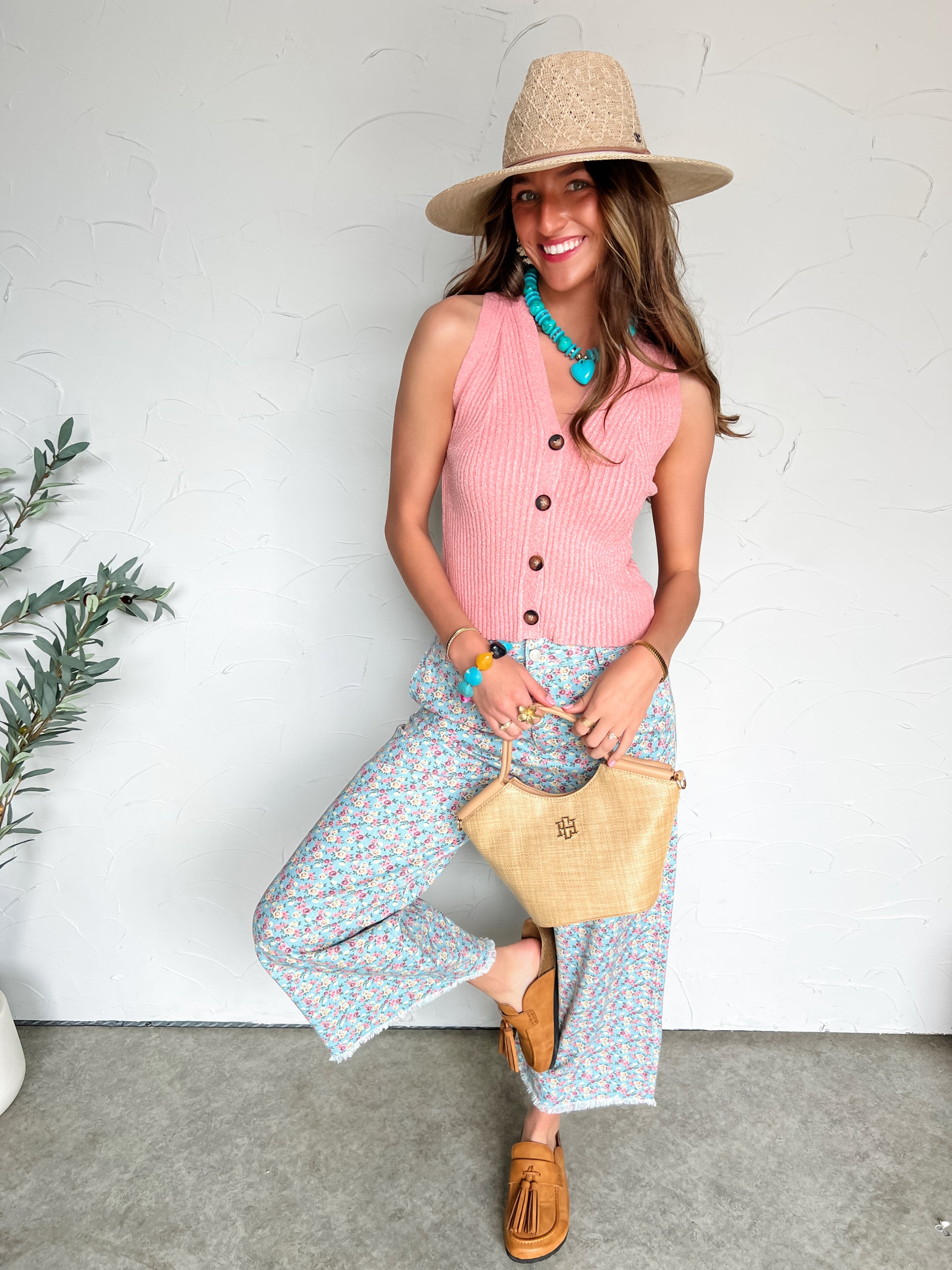 Styled With: Our Places To Be Floral Denim Pants & {CH} Leland Mini Tote Natural & Ariana Clog- Tan & {TJ} Blue Crush Necklace