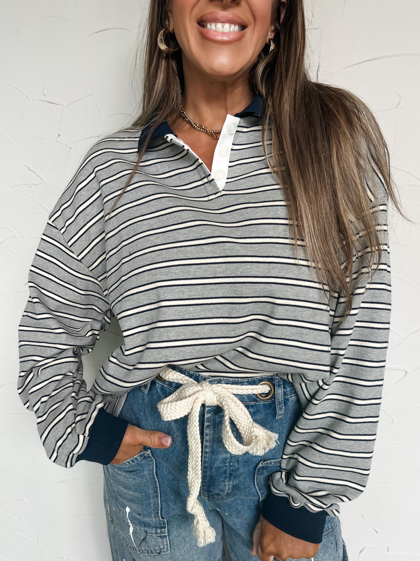 Step By Step Striped Top- Grey/Navy